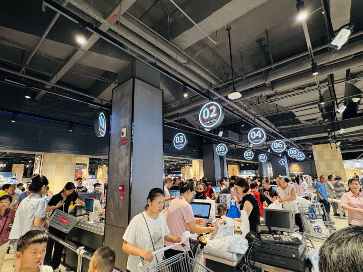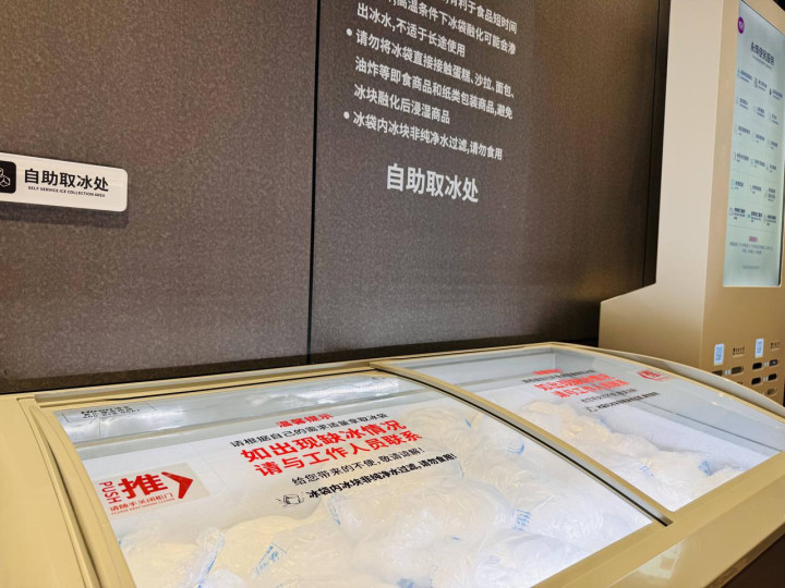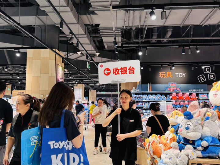 卖场环境呈现显著改观,取消强制动线,主通道大幅拓宽,货架高度统一降至1.6米,整体布局更加开阔通透,顾客视野与购物便捷性得到明显优化。细节处融入多元人文关怀:食品货架配置放大镜,方便老年顾客阅读商品信息;连卷袋配备湿手器,解决开袋难的困扰;家居用品区设易碎品打包台、粉色连卷袋区分商品果切组合按甜度标明食用顺序;购买西瓜、榴莲、凤梨等可免费现场剥切;冷链区域配备防冻手套,多方面优化全客群购物体验。